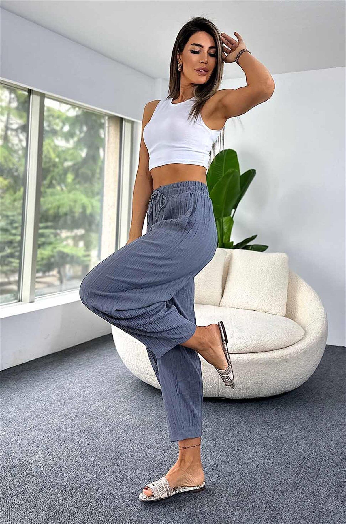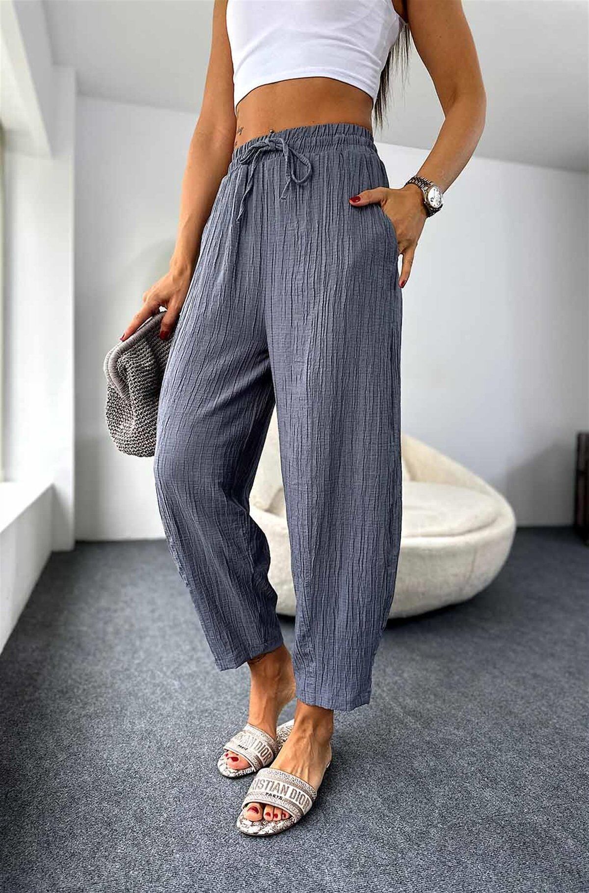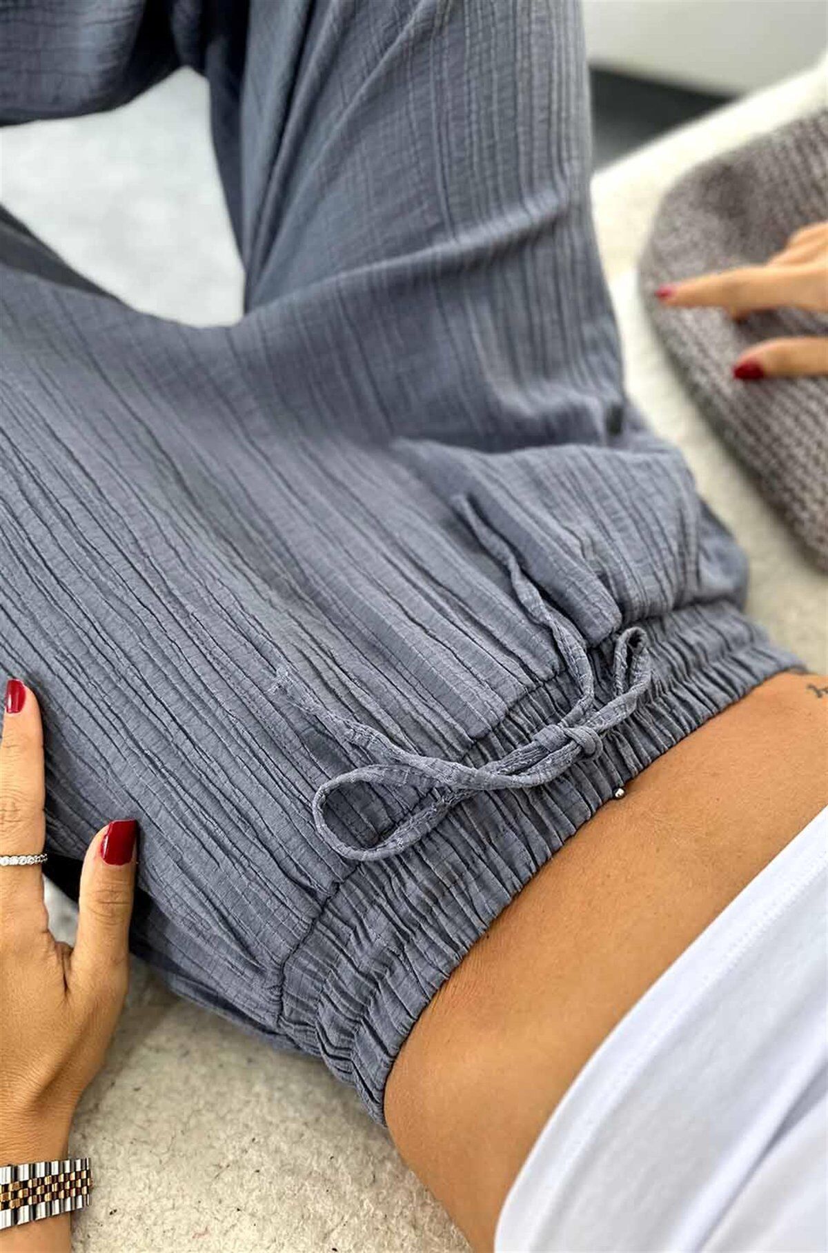 Gofre Kadın Şalvar Pantolon Antrasit – Lastikli Bel, Bol Kesim, Yazlık Rahat Model, İnce Kumaş