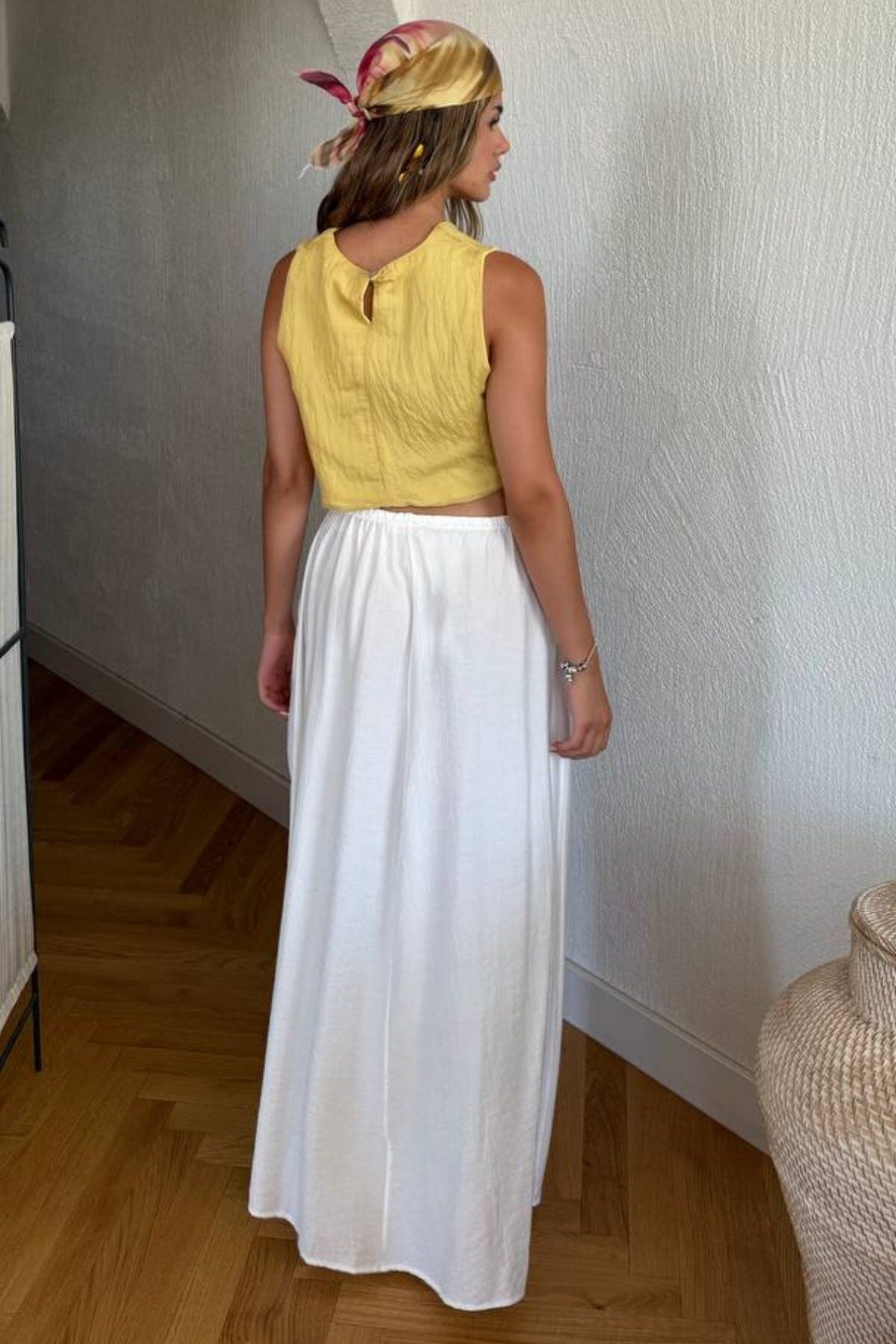 İlkbahar ve yaz sezonu için ideal olan bu uzun etek, basic tişört, gömlek ve tuniklerle kolayca kombinlenebilir. Günlük kullanım, tatil ve şehir stilinde rahatlıkla tercih edilebilir.