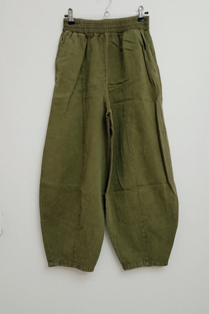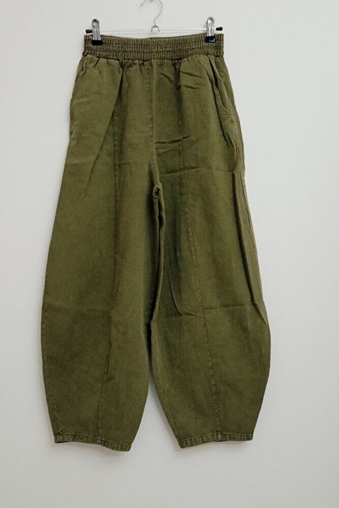 Kadın Haki Kar Yıkamalı Gabardin Şalvar Pantolon – Rahat Kesim, Pamuklu