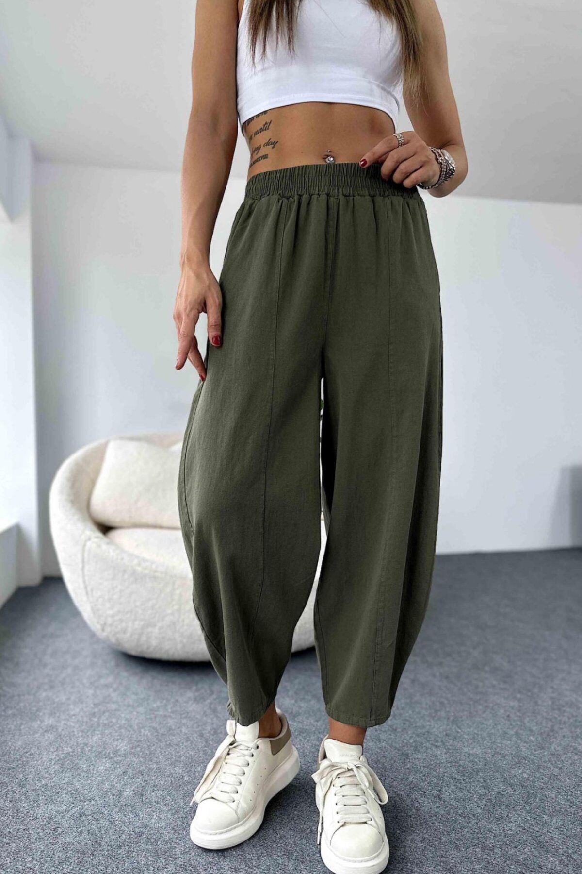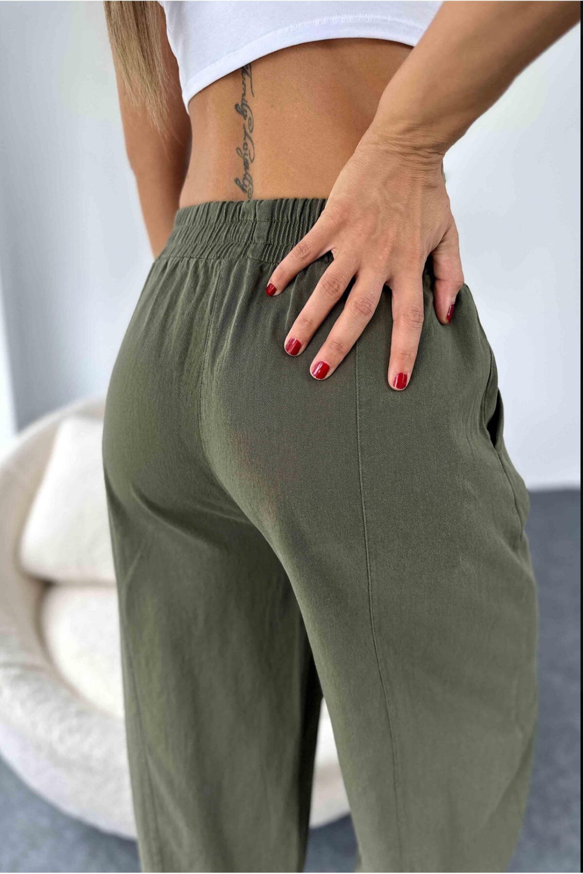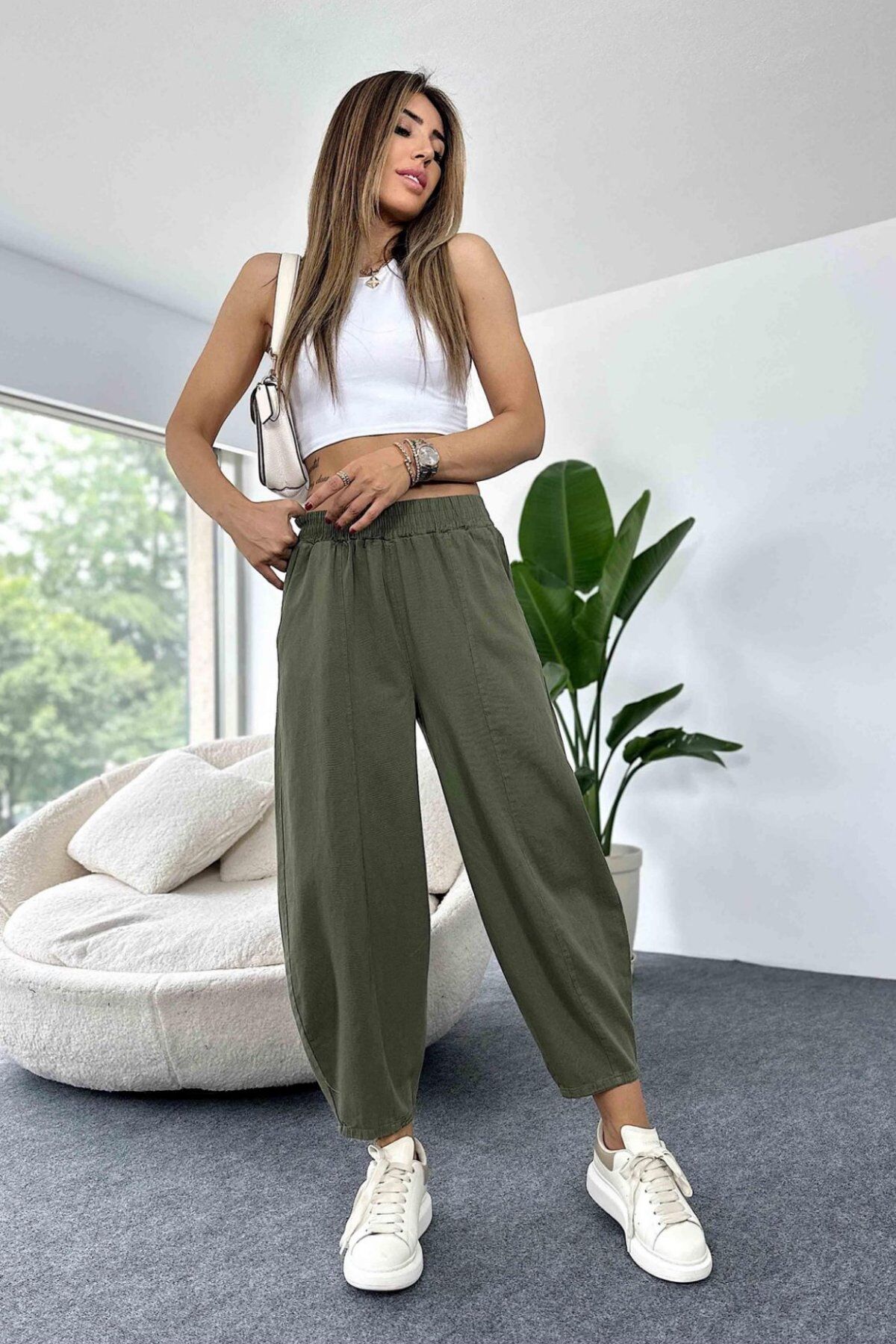 Kadın Haki Şalvar Pantolon – Salaş, Dört Mevsim, Rahat, Pamuk Gabardin 4003, %100 Pamuk, Yazlık, Kışlık, Mevsimlik