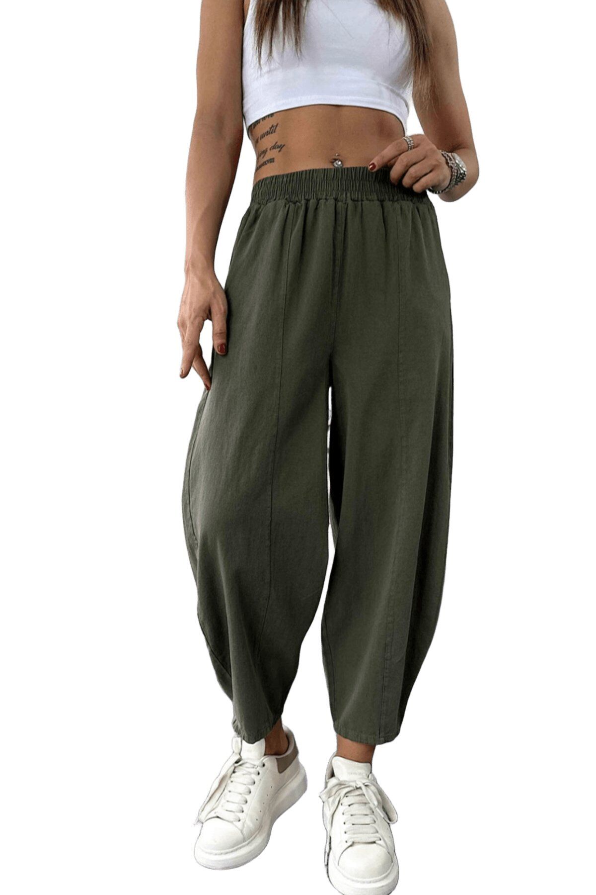 Kadın Haki Şalvar Pantolon Salaş Dört Mevsim Rahat Pamuk Lastikli Bel Günlük Model Gabardin