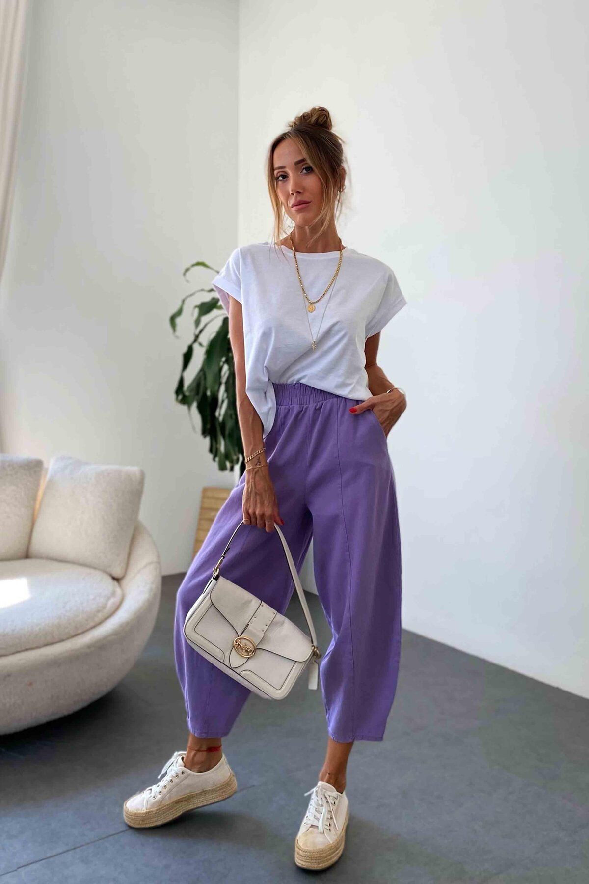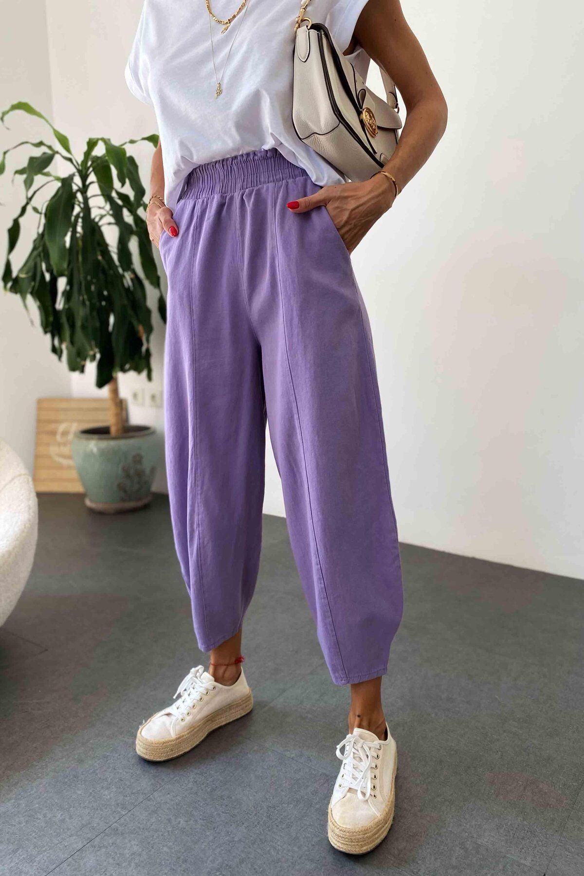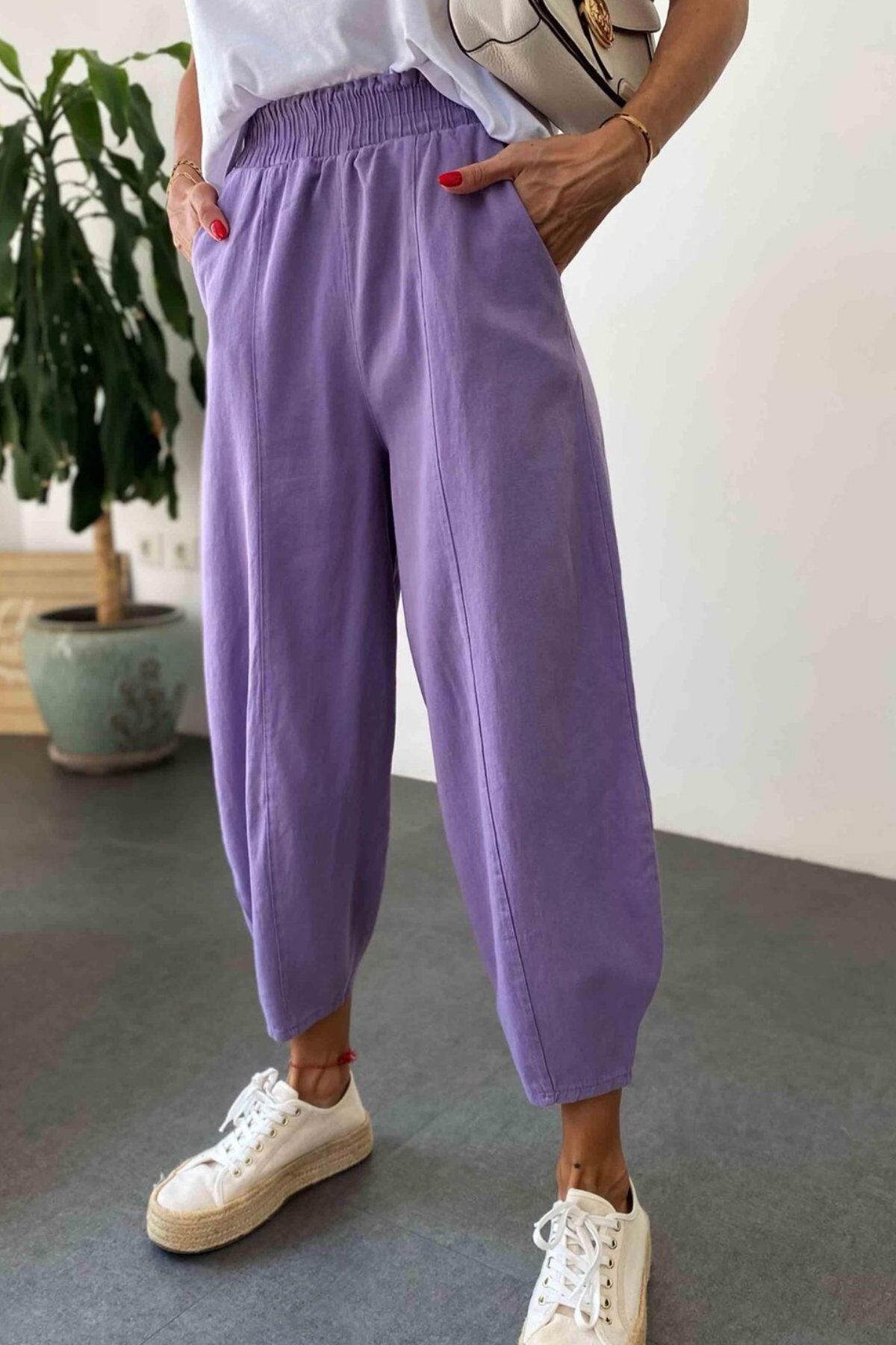 Kadın Lila Şalvar Pantolon Salaş Dört Mevsim Rahat Pamuk Lastikli Bel Günlük Model Gabardin