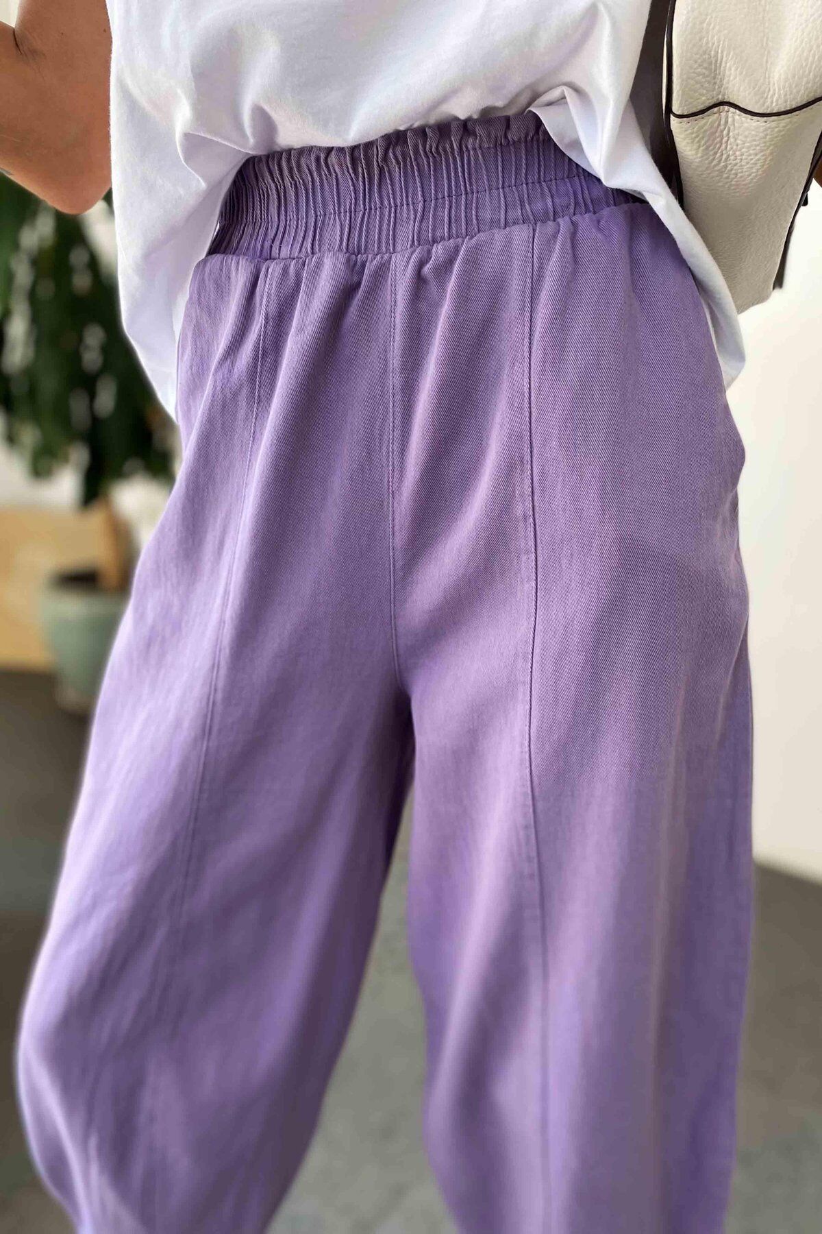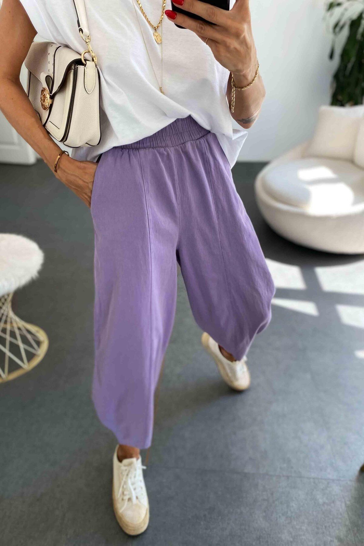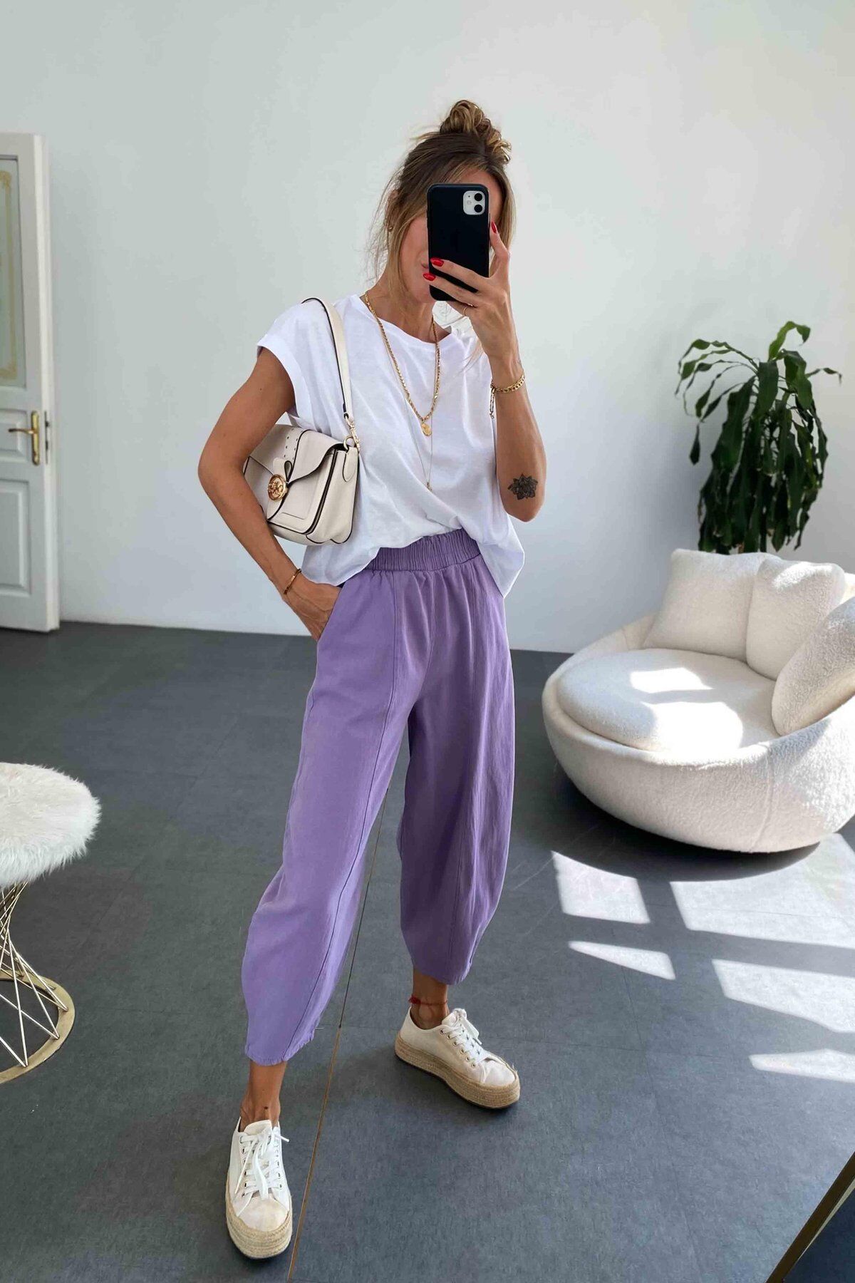 Kadın Lila Şalvar Pantolon Salaş Dört Mevsim Rahat Pamuk Lastikli Bel Günlük Model Gabardin