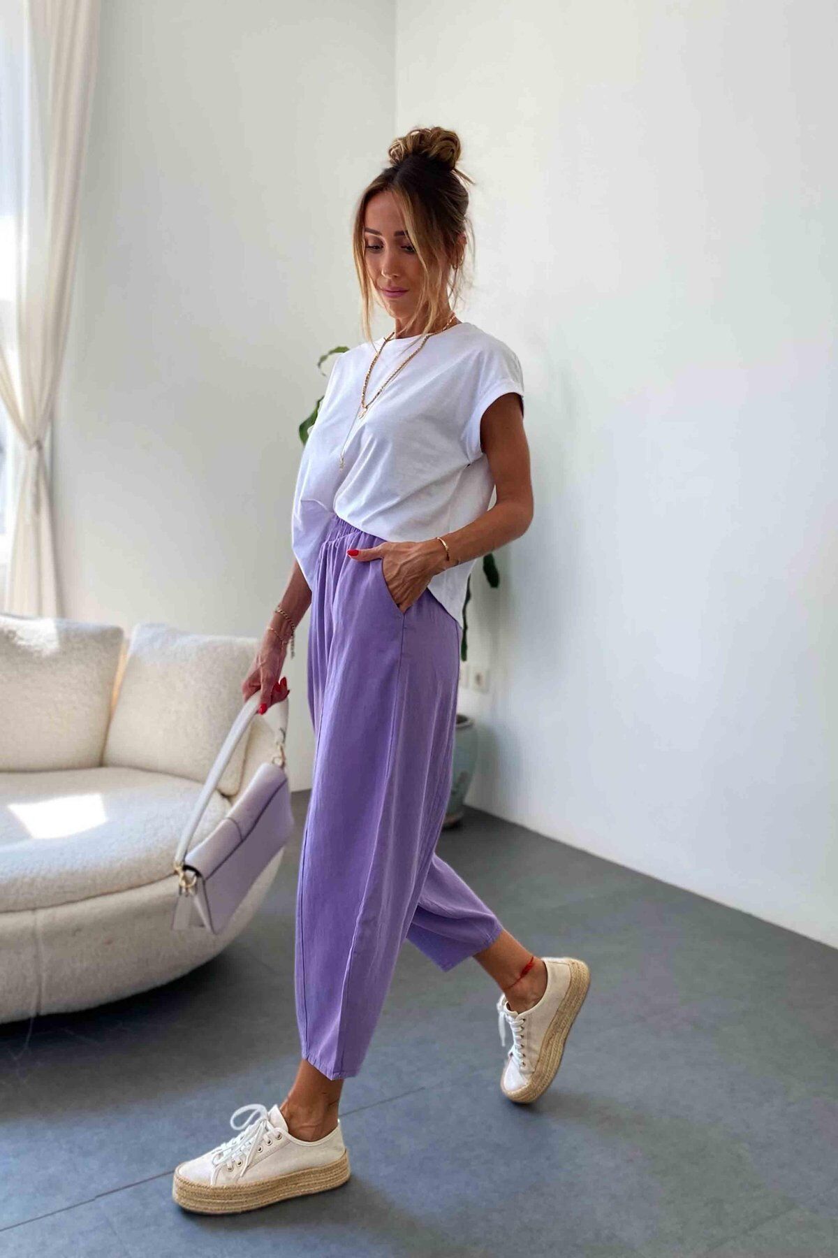 Kadın Lila Şalvar Pantolon – Salaş, Dört Mevsim, Rahat, Pamuk Gabardin 4003
