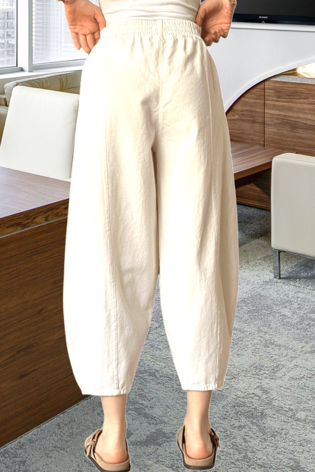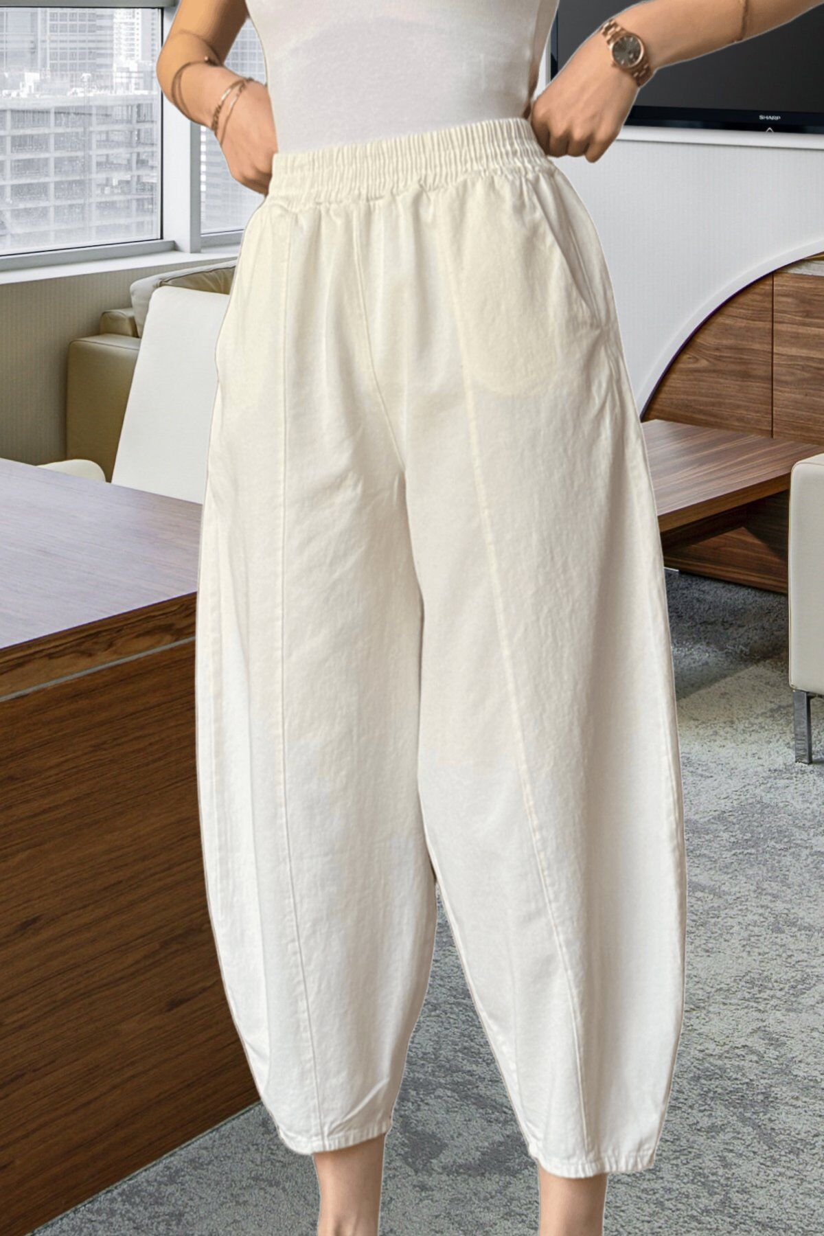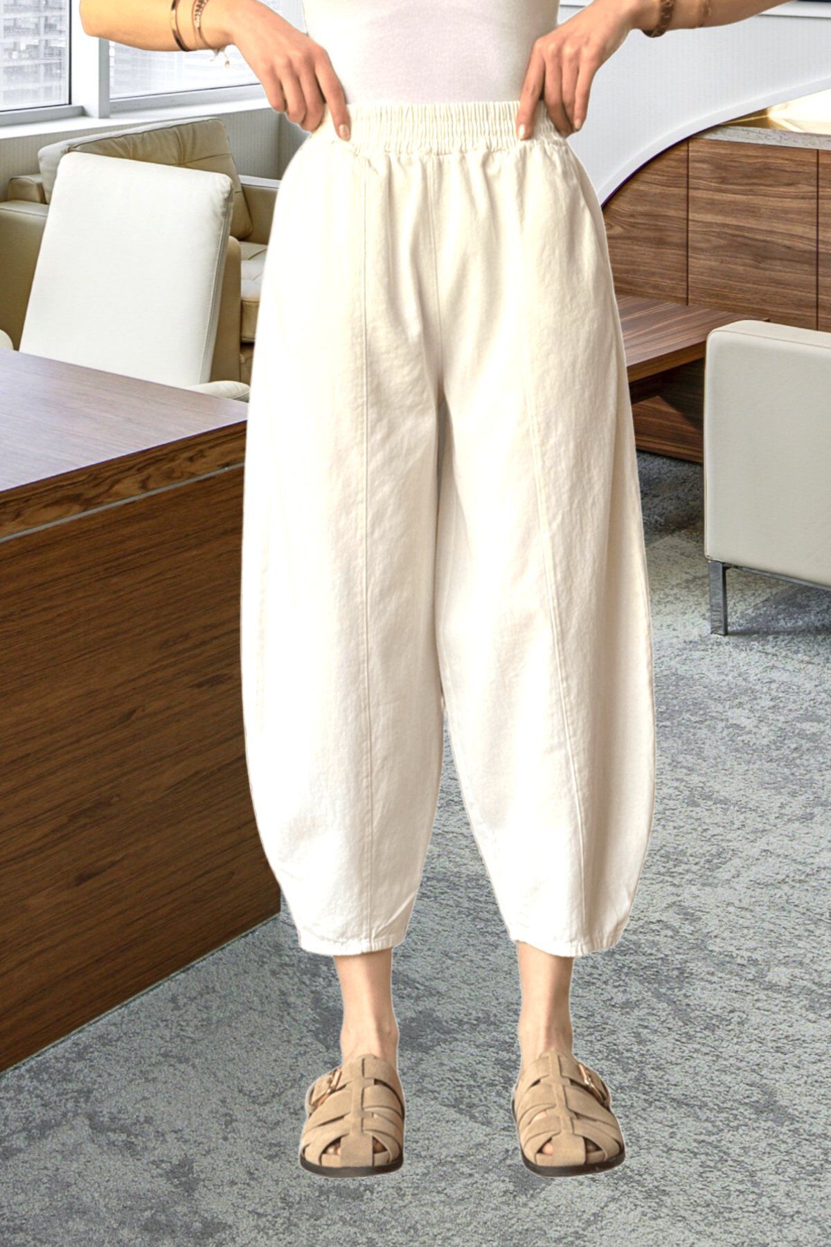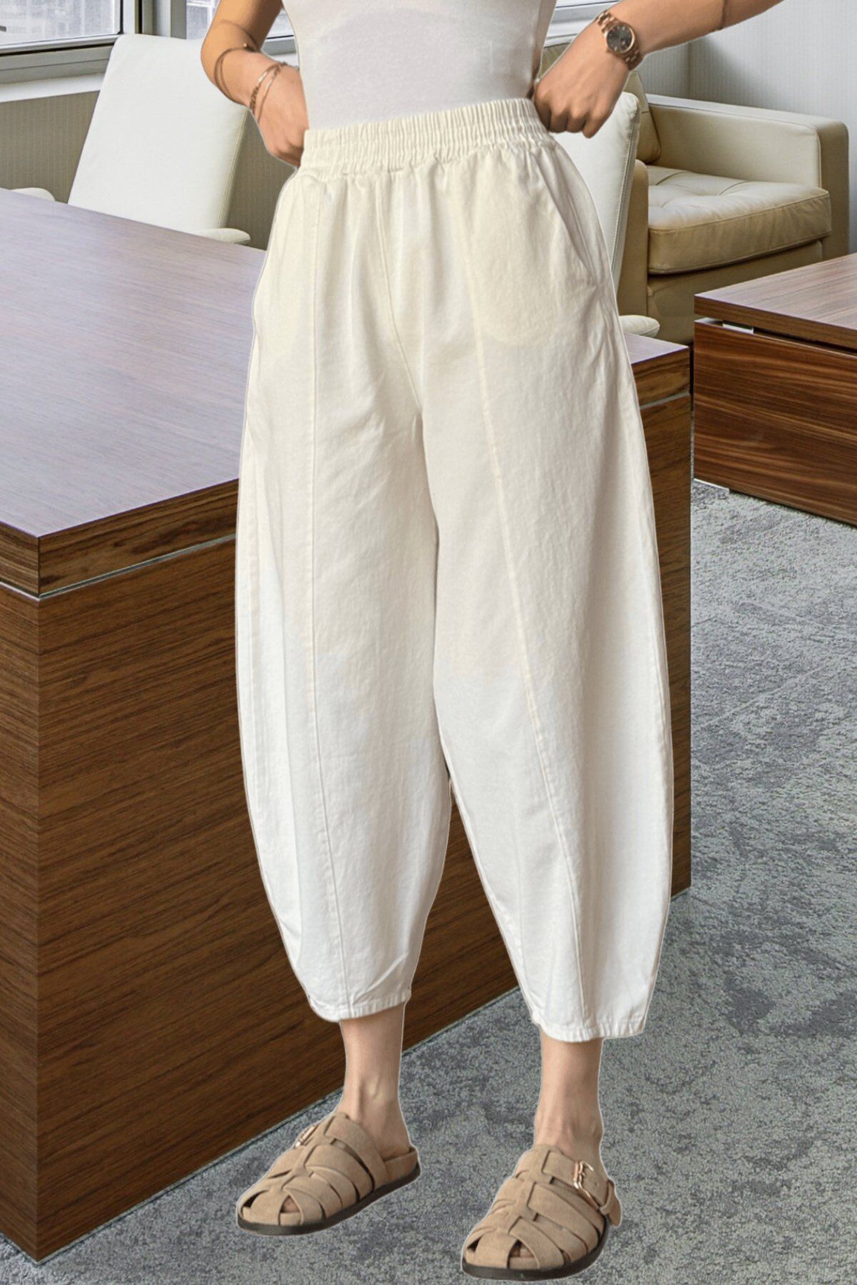 Canlı ve enerjik bir tarz! Kadın sarı şalvar pantolon, doğal pamuk kumaşıyla nefes alır ve dört mevsim kullanılabilir.