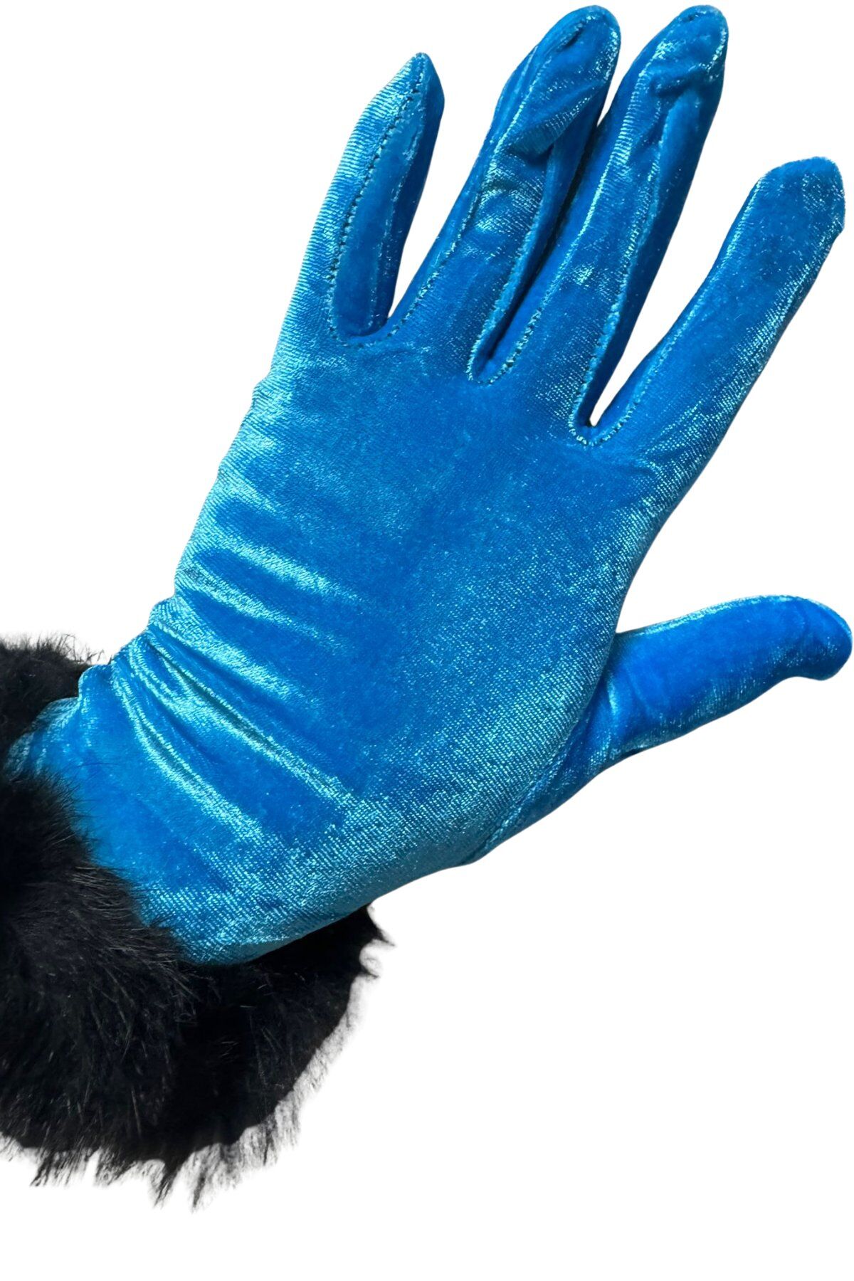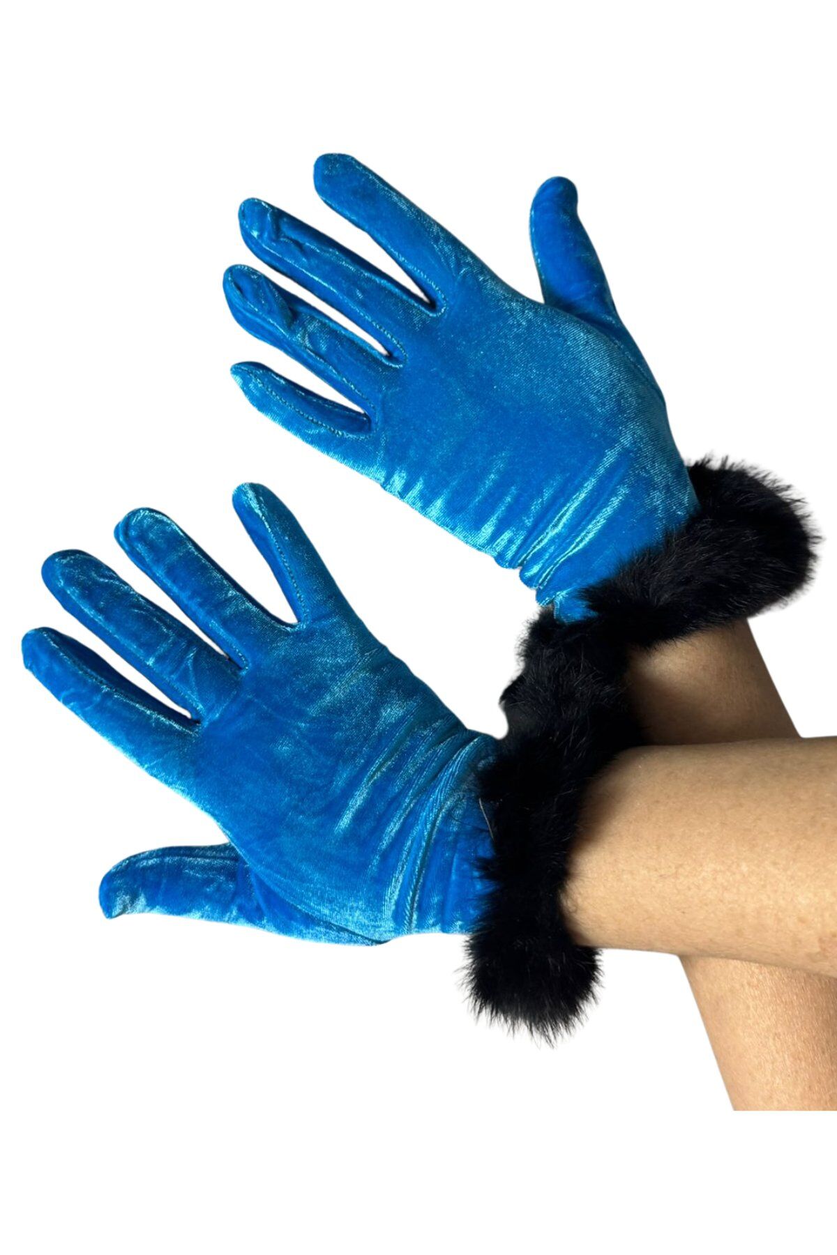 Kadın Mavi Kadife Tüylü Eldiven | Şık, Kışlık, Günlük & Davet Kullanım