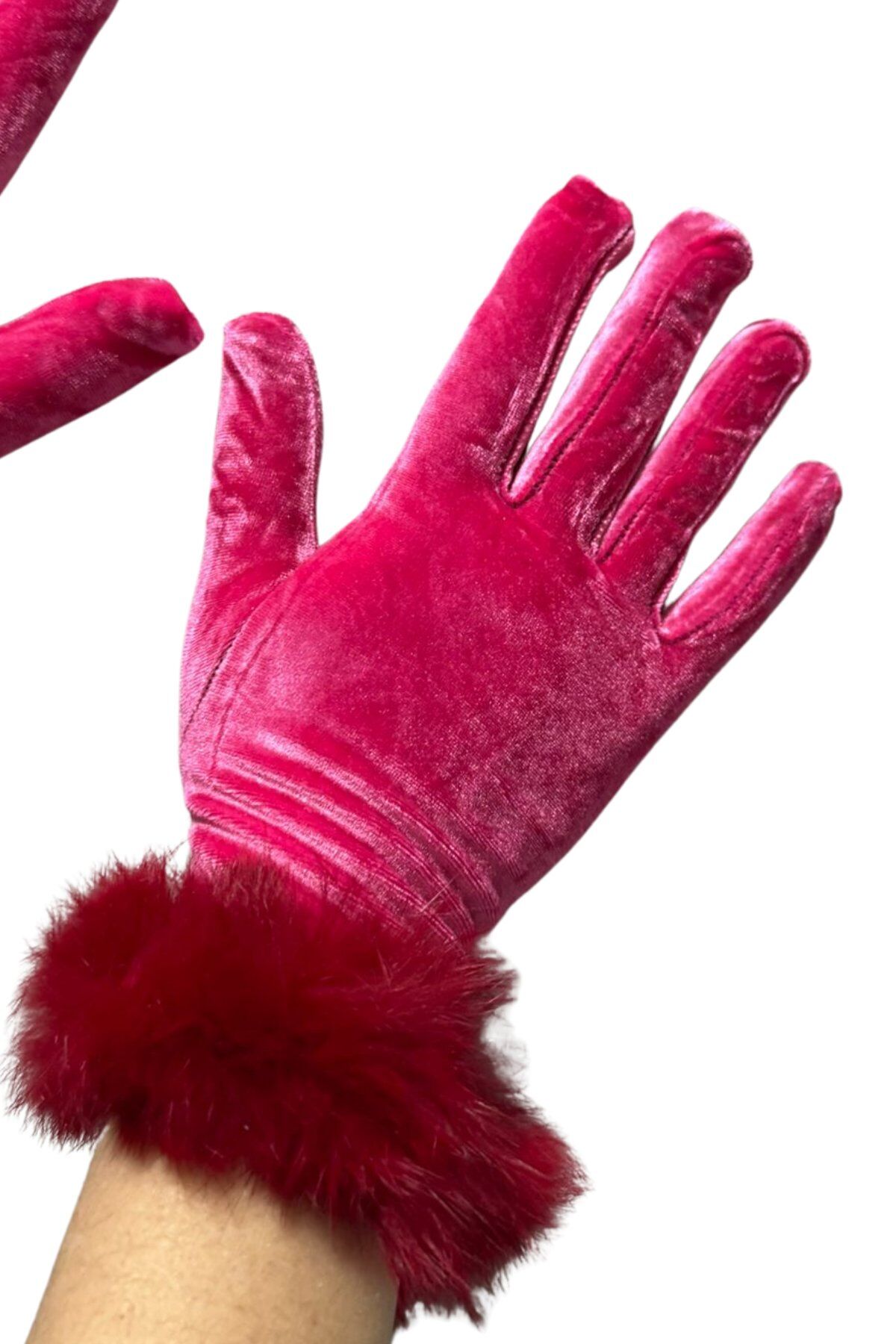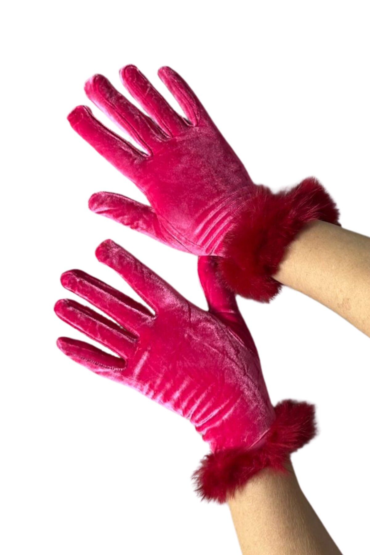 Kadın Pembe Kadife Tüylü Eldiven | Şık, Kışlık, Günlük & Davet Kullanım