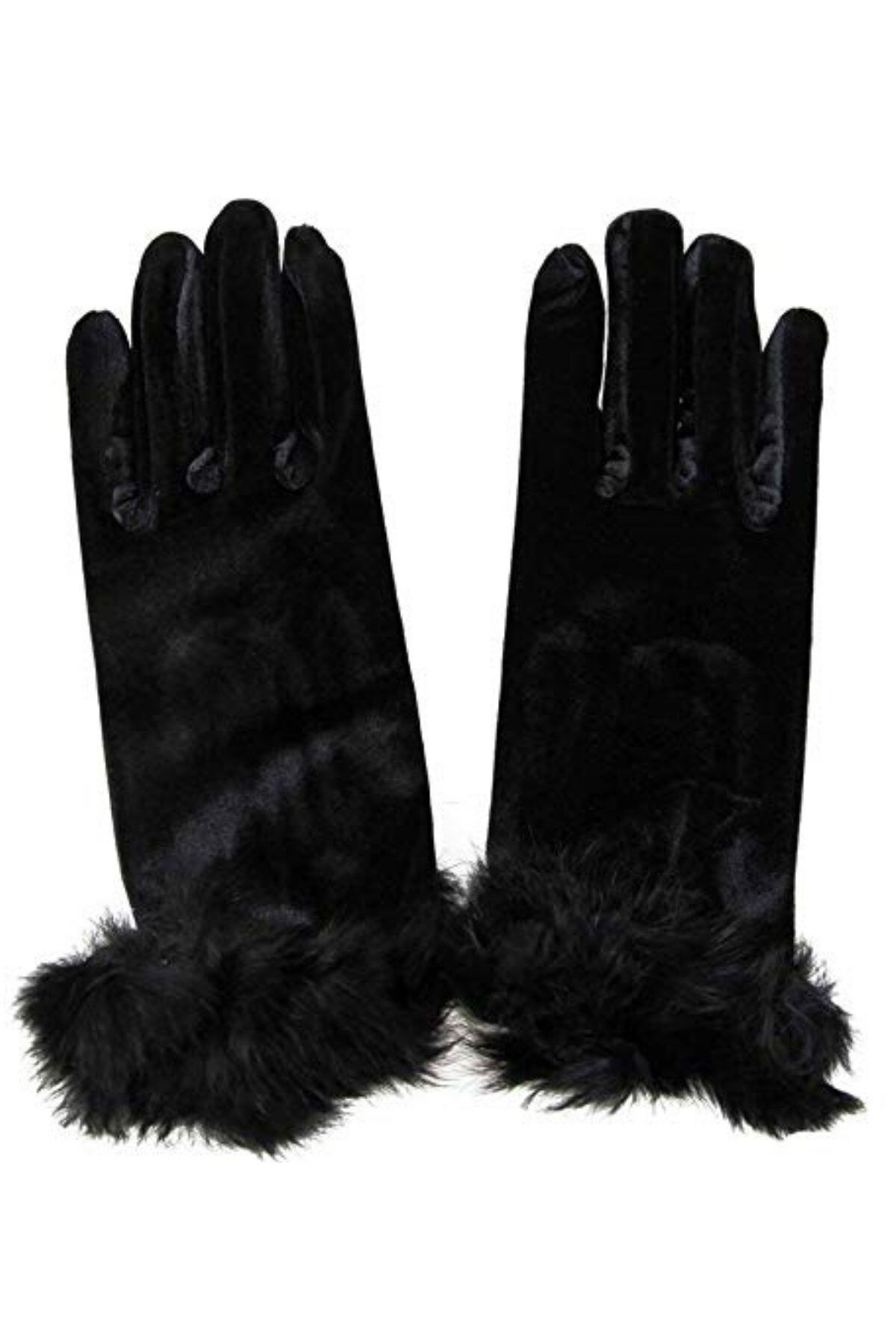 Kadın Siyah Kadife Tüylü Kısa Eldiven | Şık, Kışlık, Davet ve Günlük Kullanım