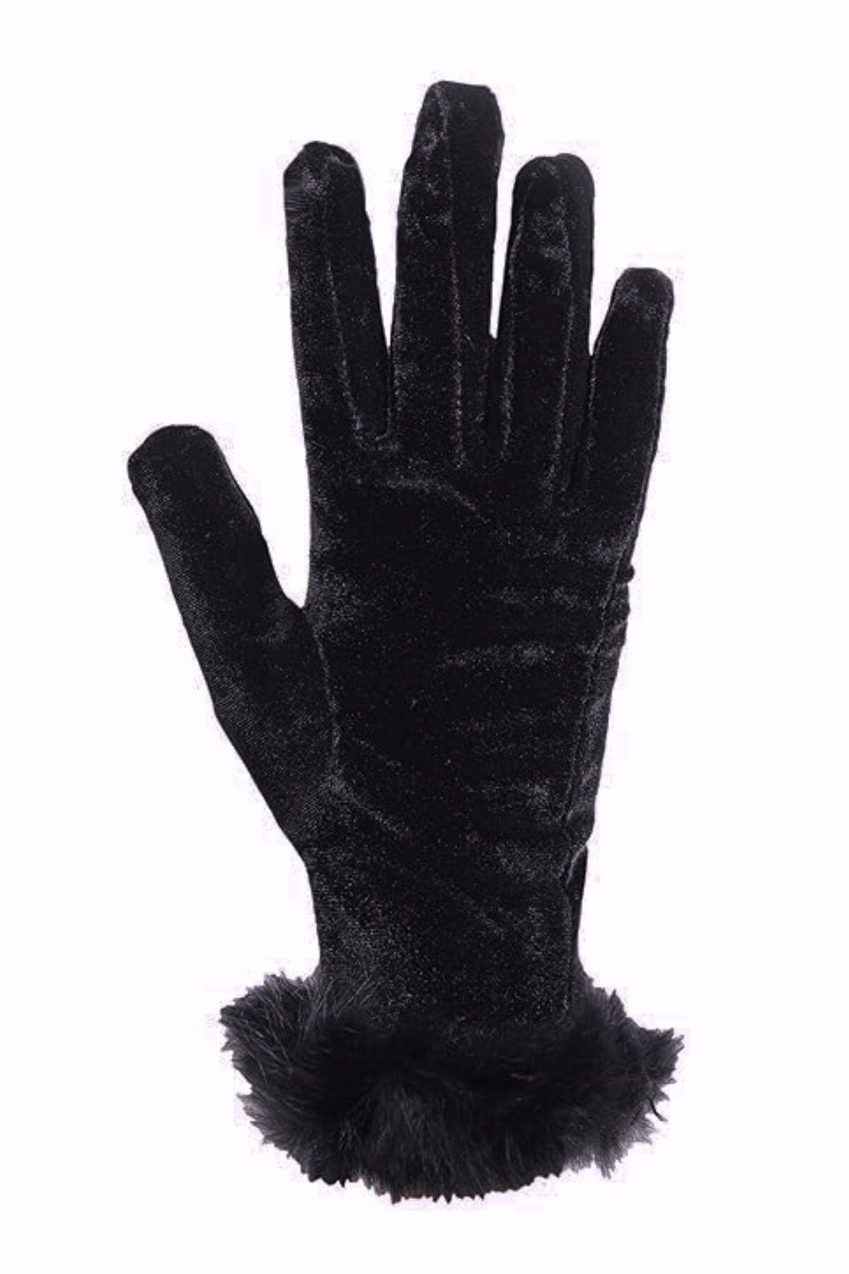 Kadın Siyah Kadife Tüylü Kısa Eldiven | Şık, Kışlık, Davet ve Günlük Kullanım Standart Beden
