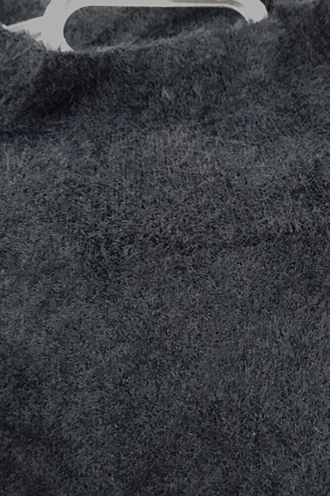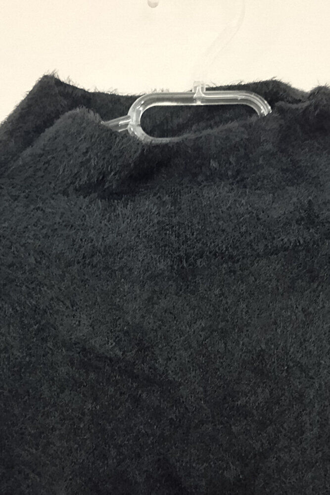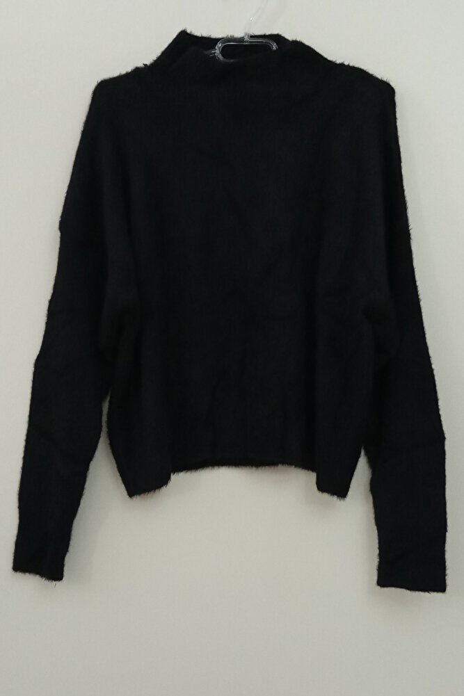 Kadın Siyah Yumoş Düşük Omuz Yarım Balıkçı Yaka Uzun Kollu Bol Kesim Kışlık Kazak