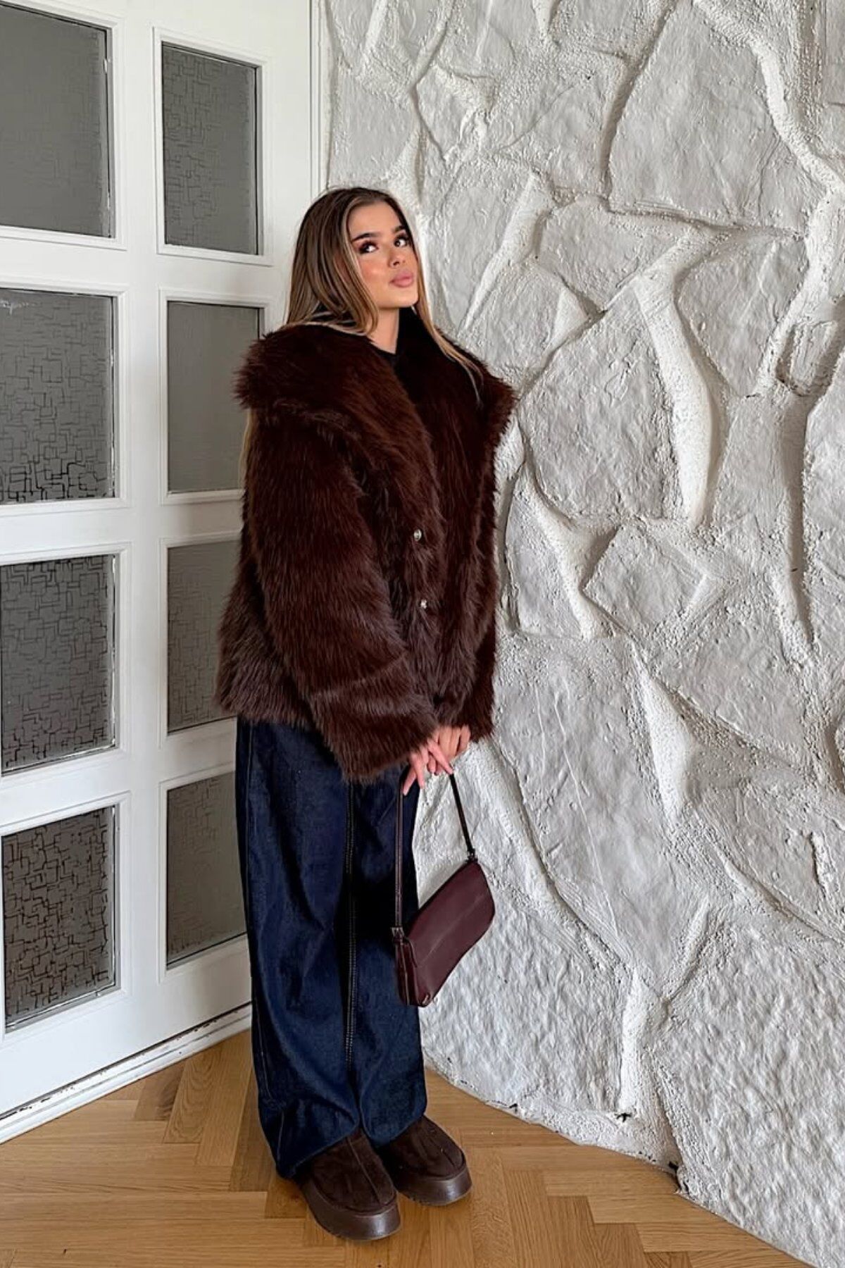 - Kumaş: %100 Polyester (Suni Kürk)