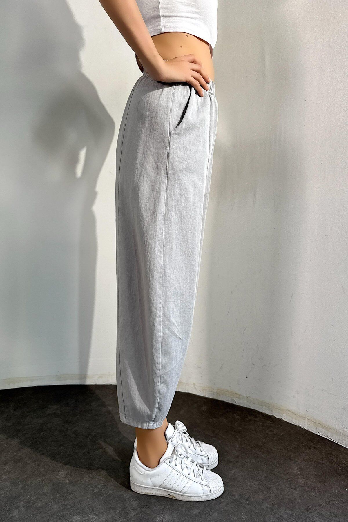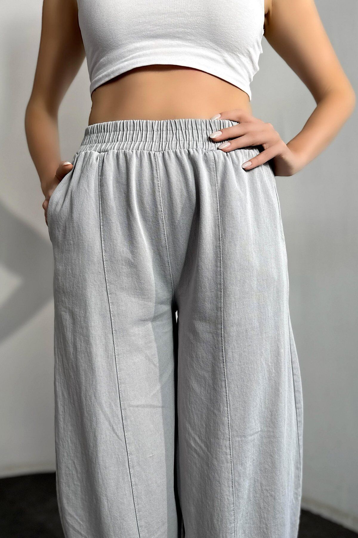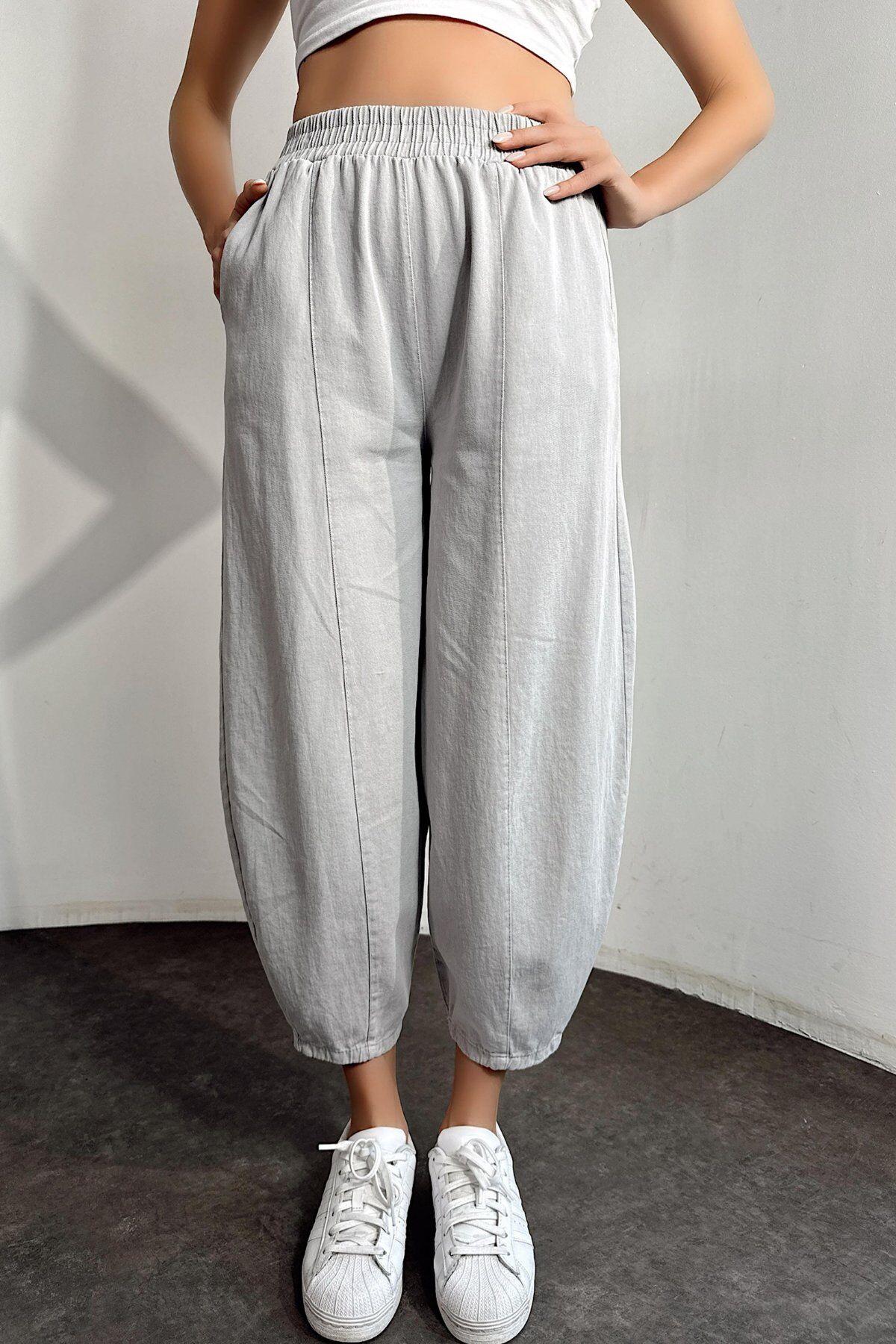 Gabardin kumaşın dayanıklılığı, salaş kesimin konforuyla buluştu! Yaz aylarında hem şık hem rahat hissetmek isteyen kadınlar için tasarlanan bu taş rengi kadın şalvar pantolon, hafif ve nefes alan yapısıyla gün boyu ferahlık sunar.