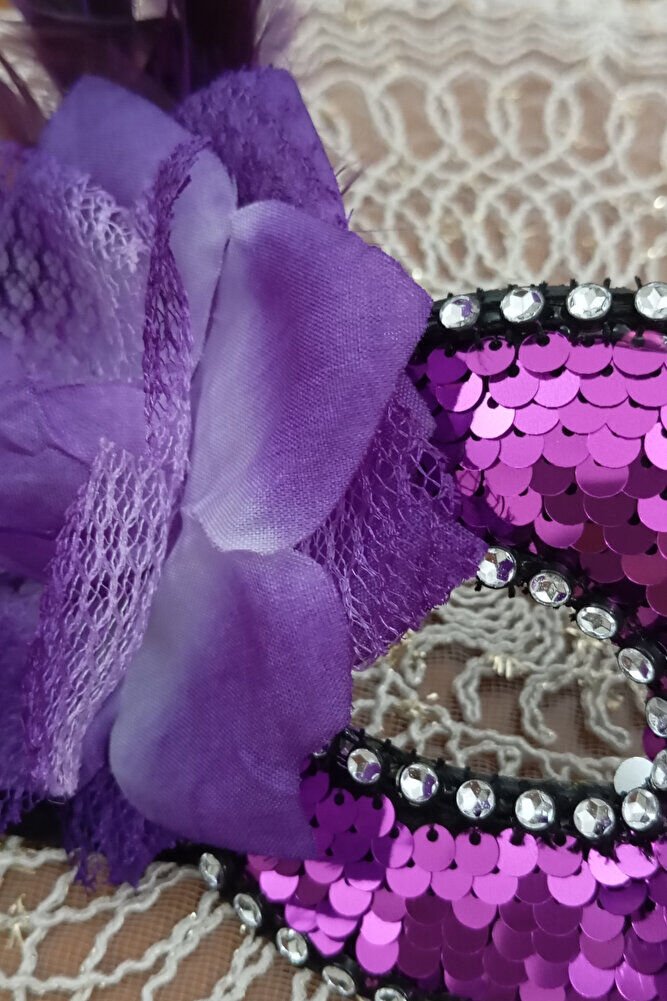 Mor Payetli Bağcıklı Parti Maskesi – El Yapımı, Karnaval & Maskeli Balo Aksesuarı